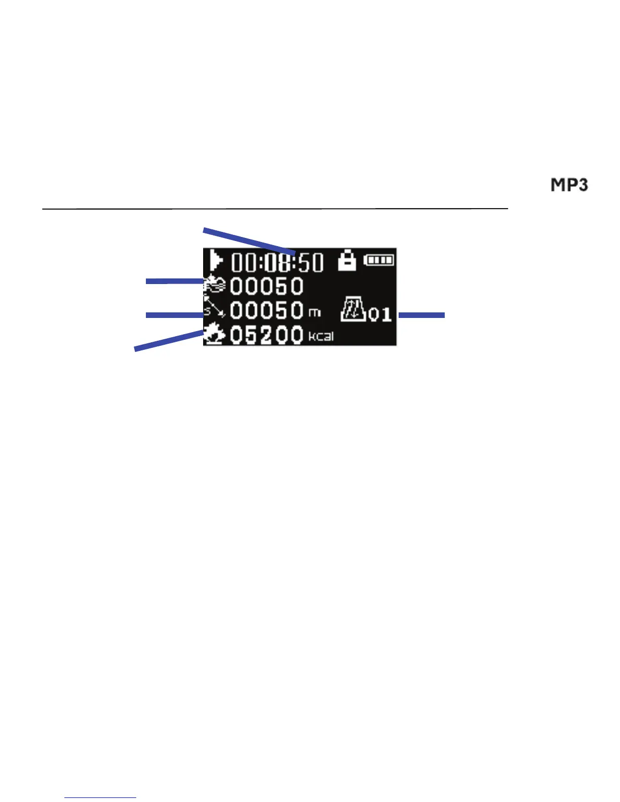gistos para verificação detalhada. (Memoriza até 20 sessões de pedómetro.)