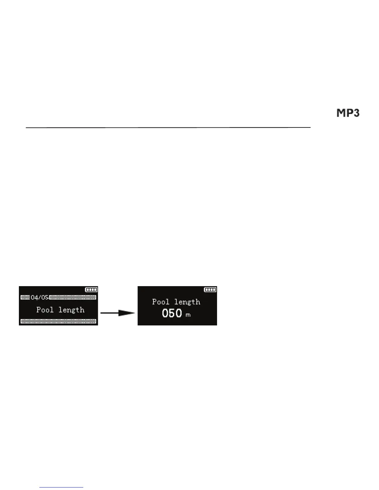 bras), Pool length (Longueur de la piscine) ou Unit (Unité de mesure) et app