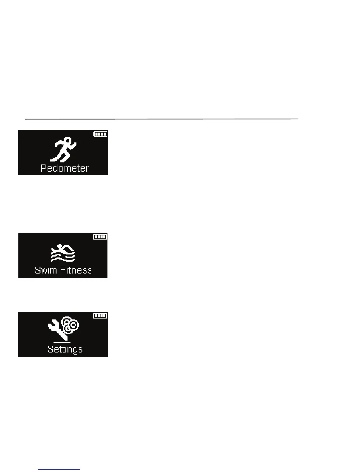 u. Pressing “Ⓘ” again, user can start/pause Swim Fitness. Pressing “M” can