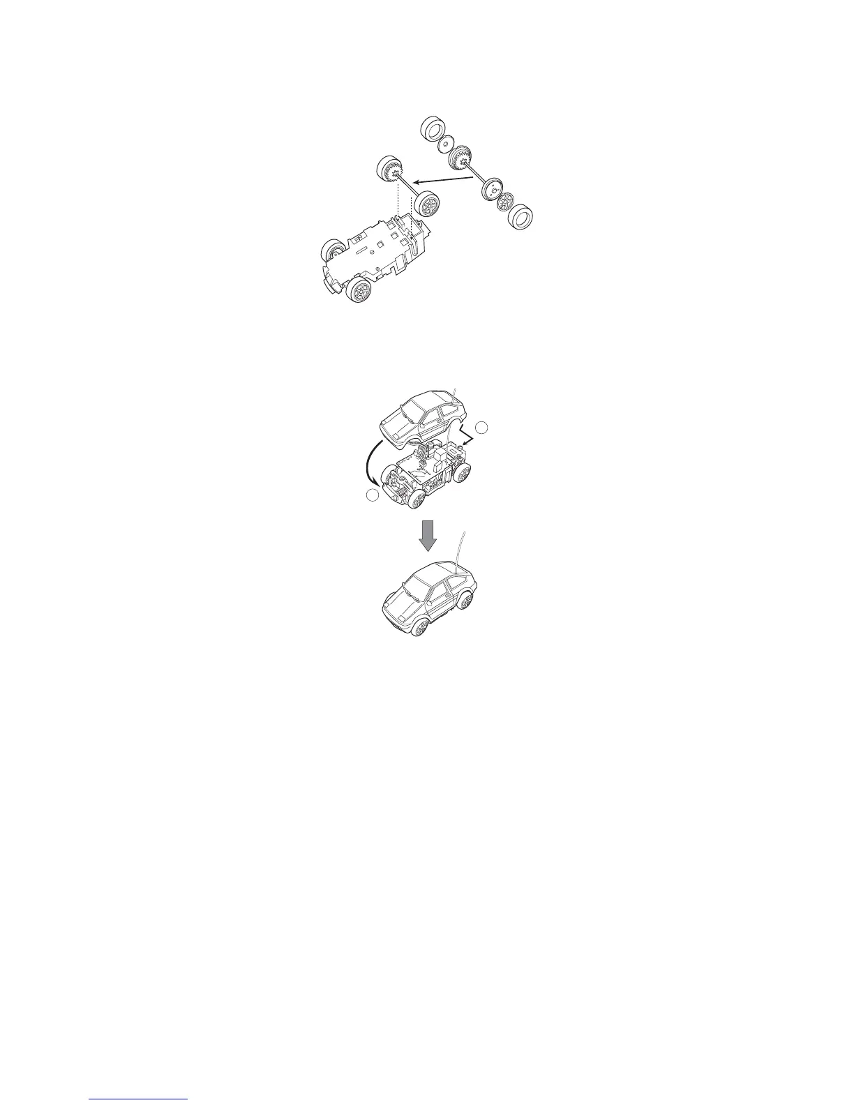 CHASSIS, and then secure the front by gently pushing the BODY TOP onto the CHASSIS as shown.