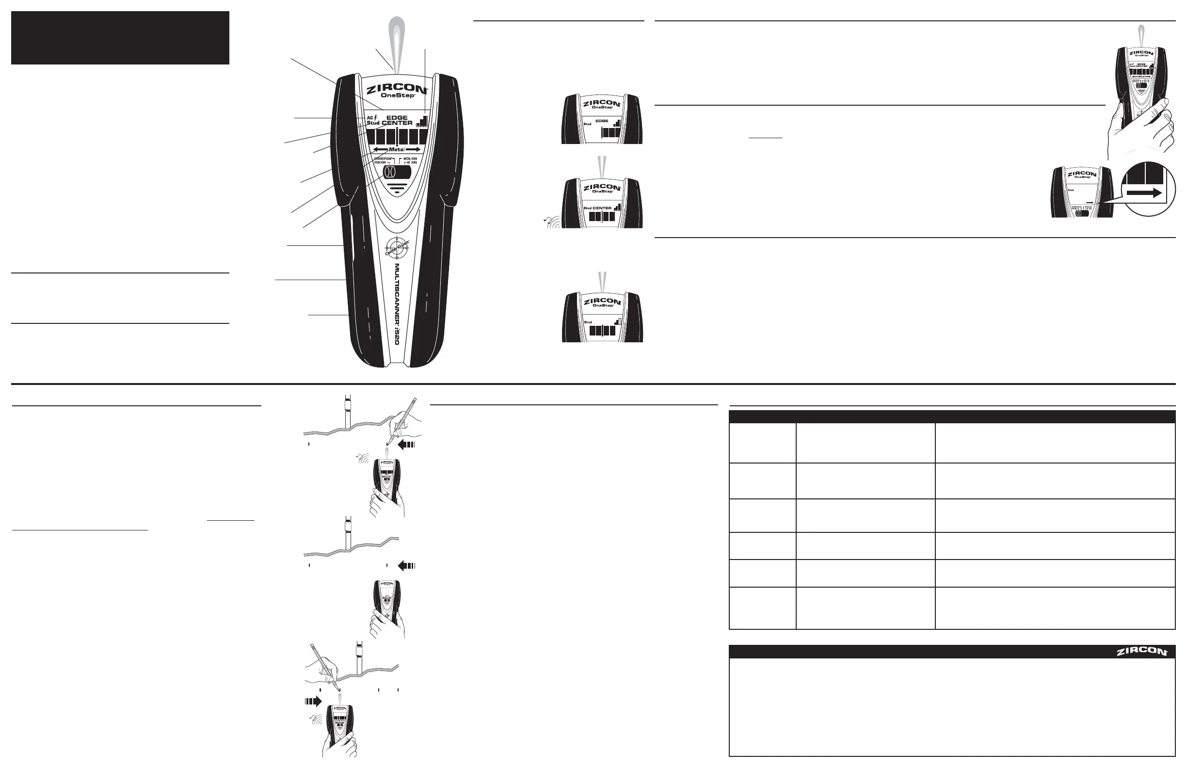 ACT, CenterVision, DeepScan, MultiScanner, OneStep, SpotLite, WireWarning, and Zircon are registered trademarks or trademarks of Zircon Corporation.