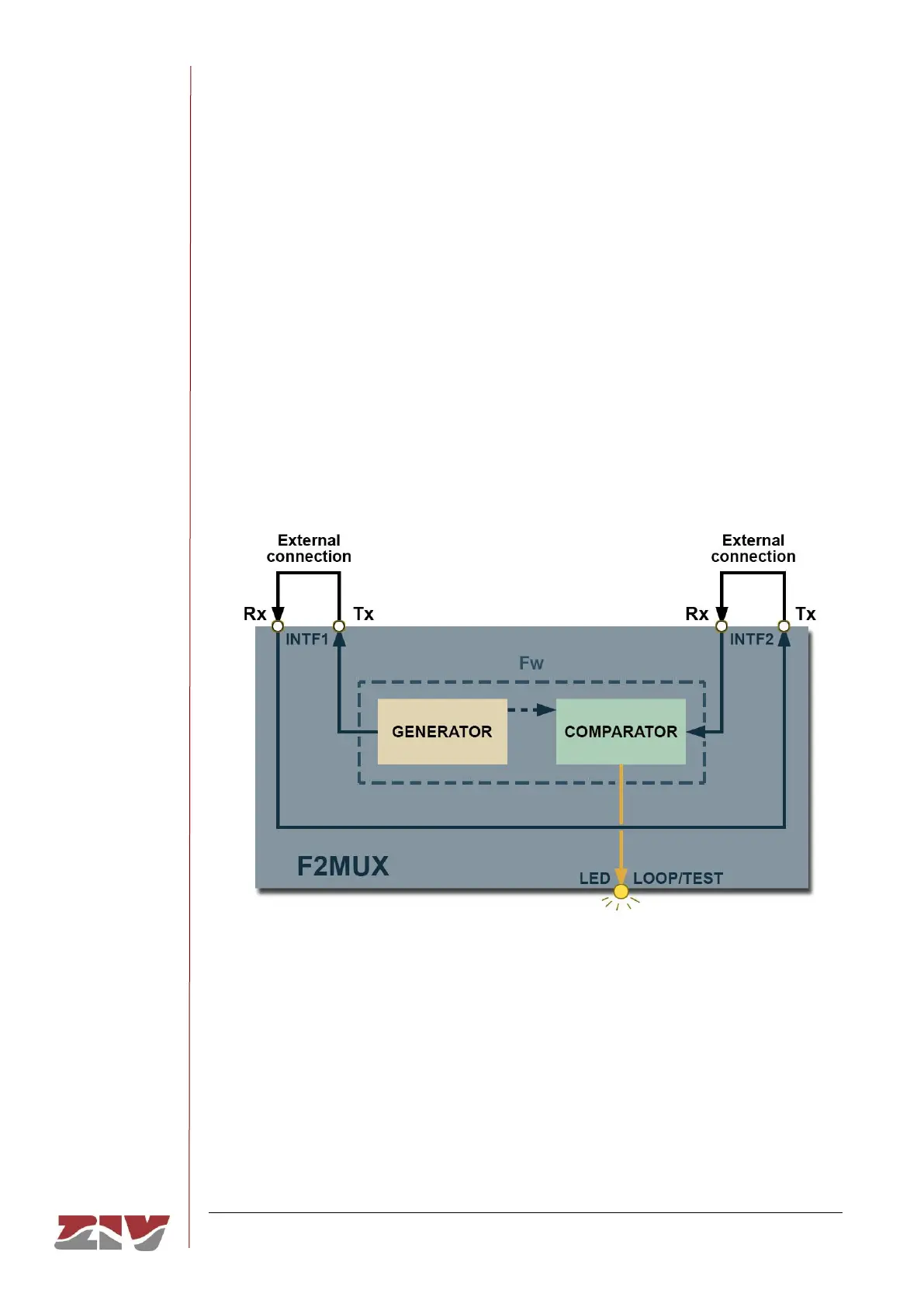 The F2MUX compares the data flow transmitted through the INTF1 interface to the data