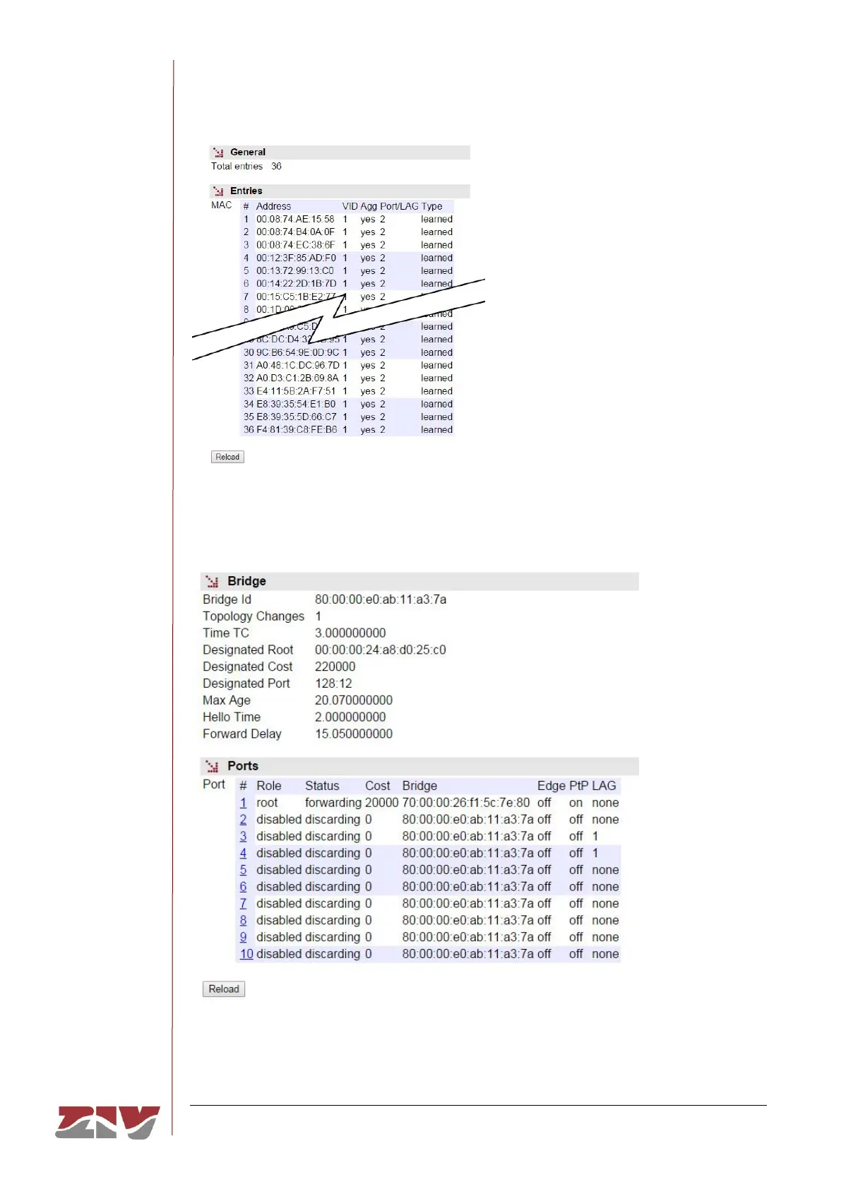 FIGURE 52 Example of statistics of the MAC addresses identified by the switch