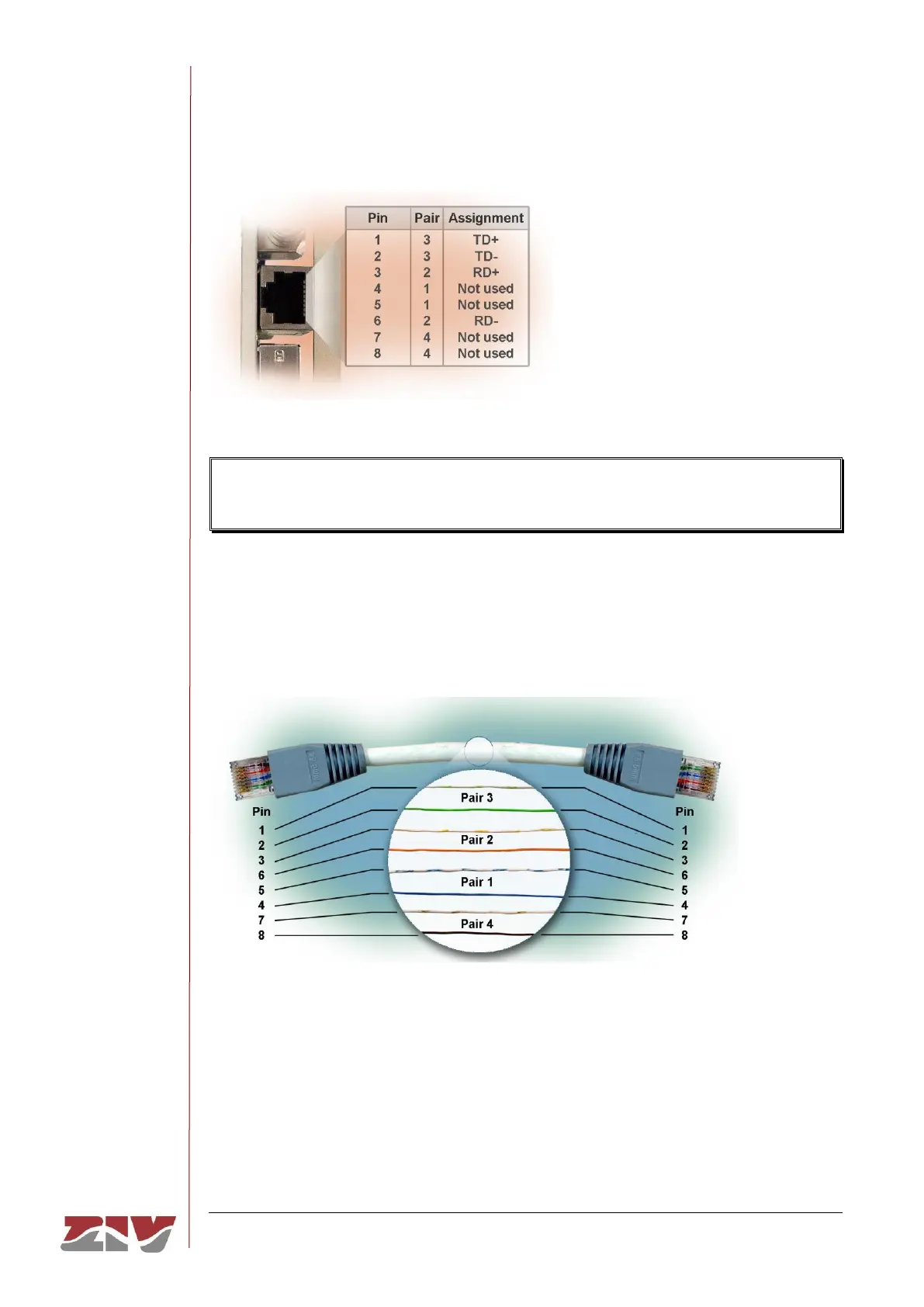 Straight-through cables must be used, see FIGURE 14, where the 4 pairs correspond at