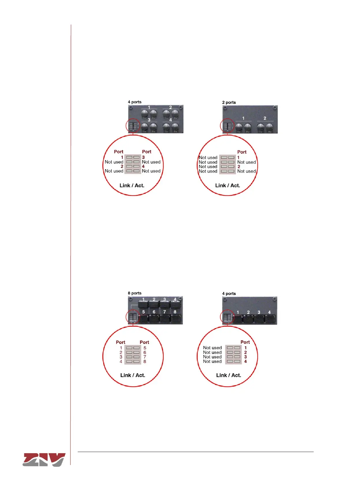LEDs associated with 100Base-Fx (multimode, ST) ports