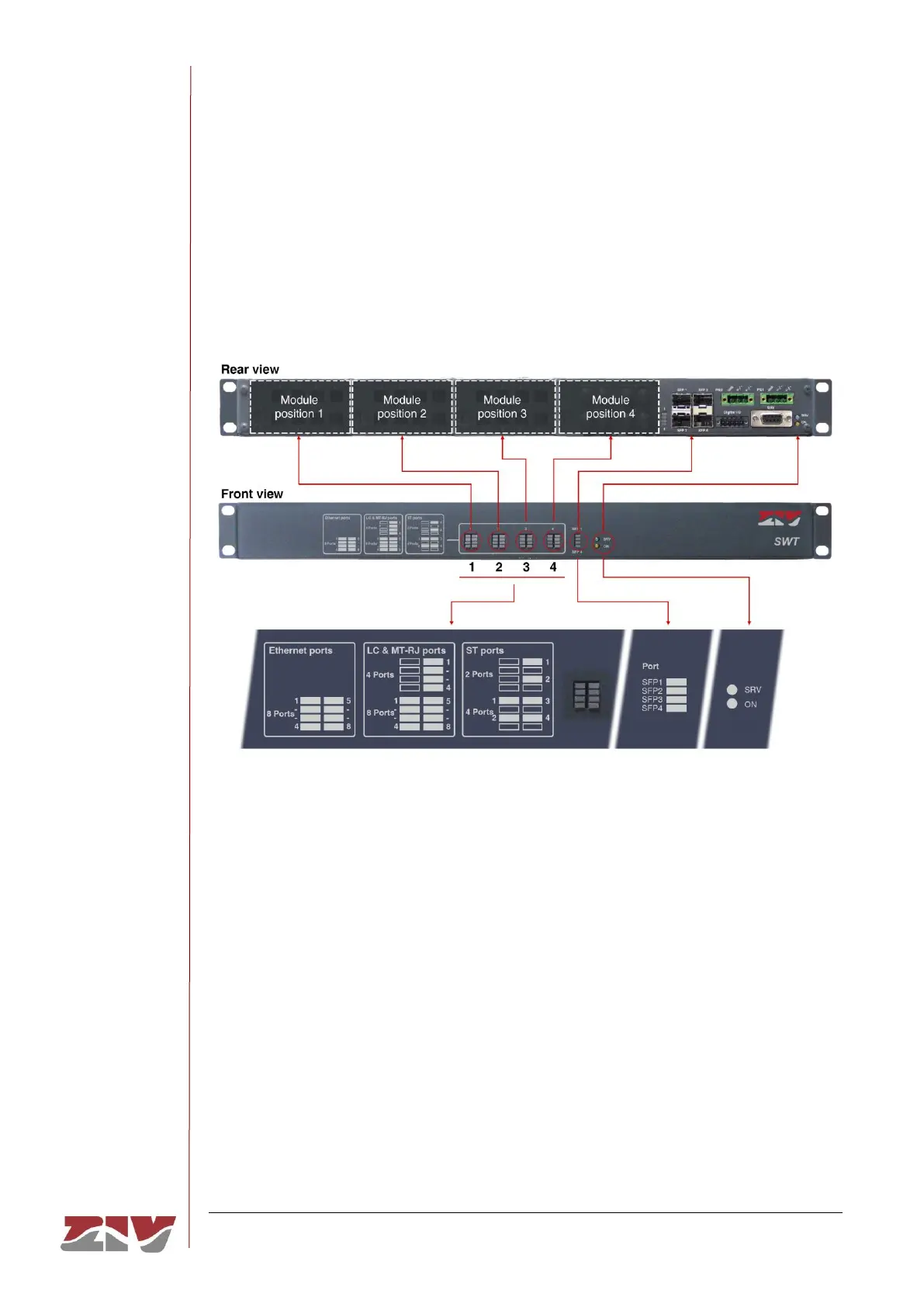 FIGURE 21 shows a front view of the SWT with rear ports, showing the detail of the
