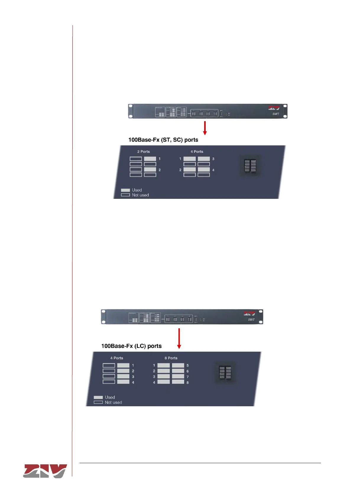 LEDs associated with 100Base-Fx (multimode, ST or SC) ports