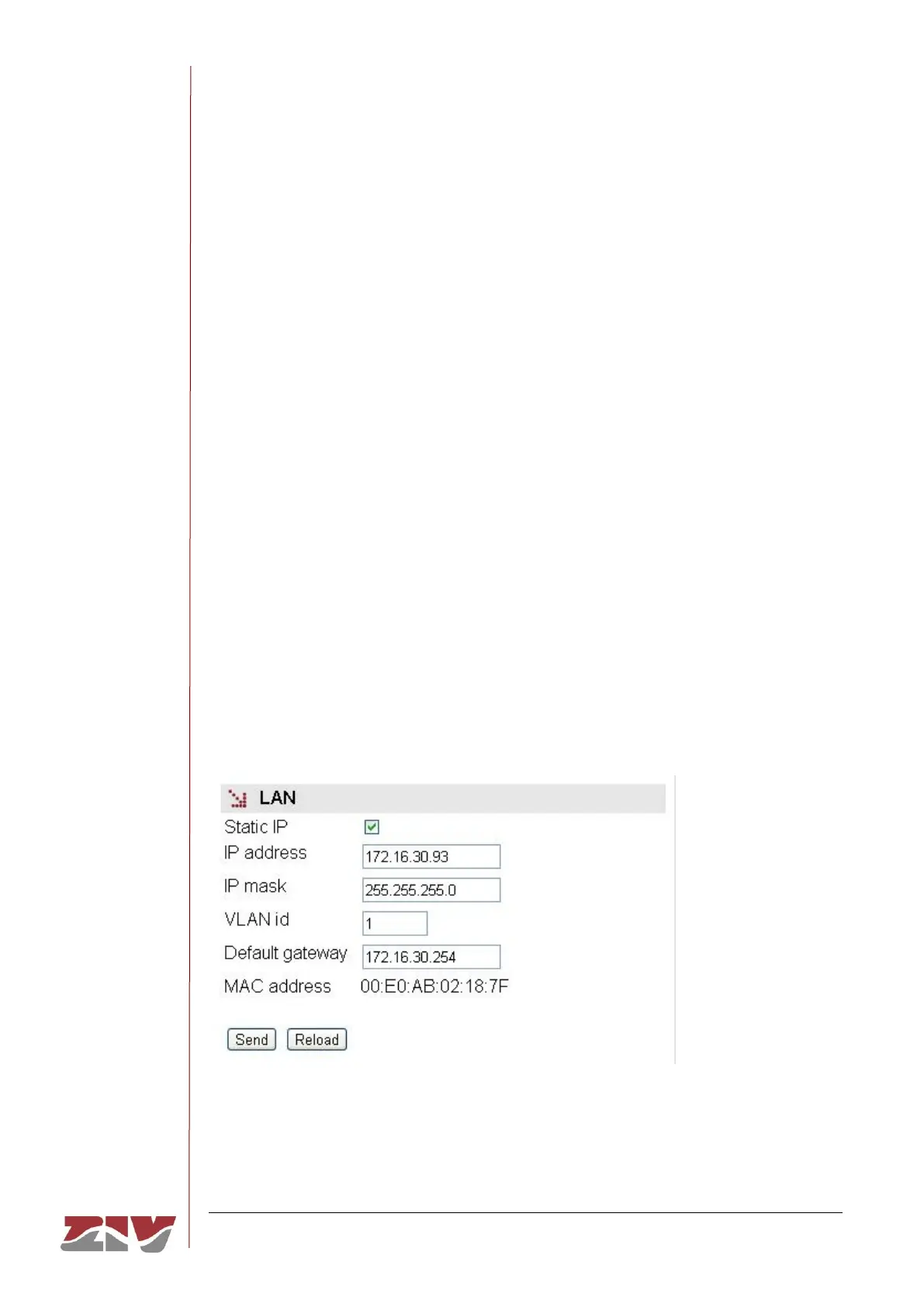 • Static IP. When this control is selected, the equipment uses the data provided by