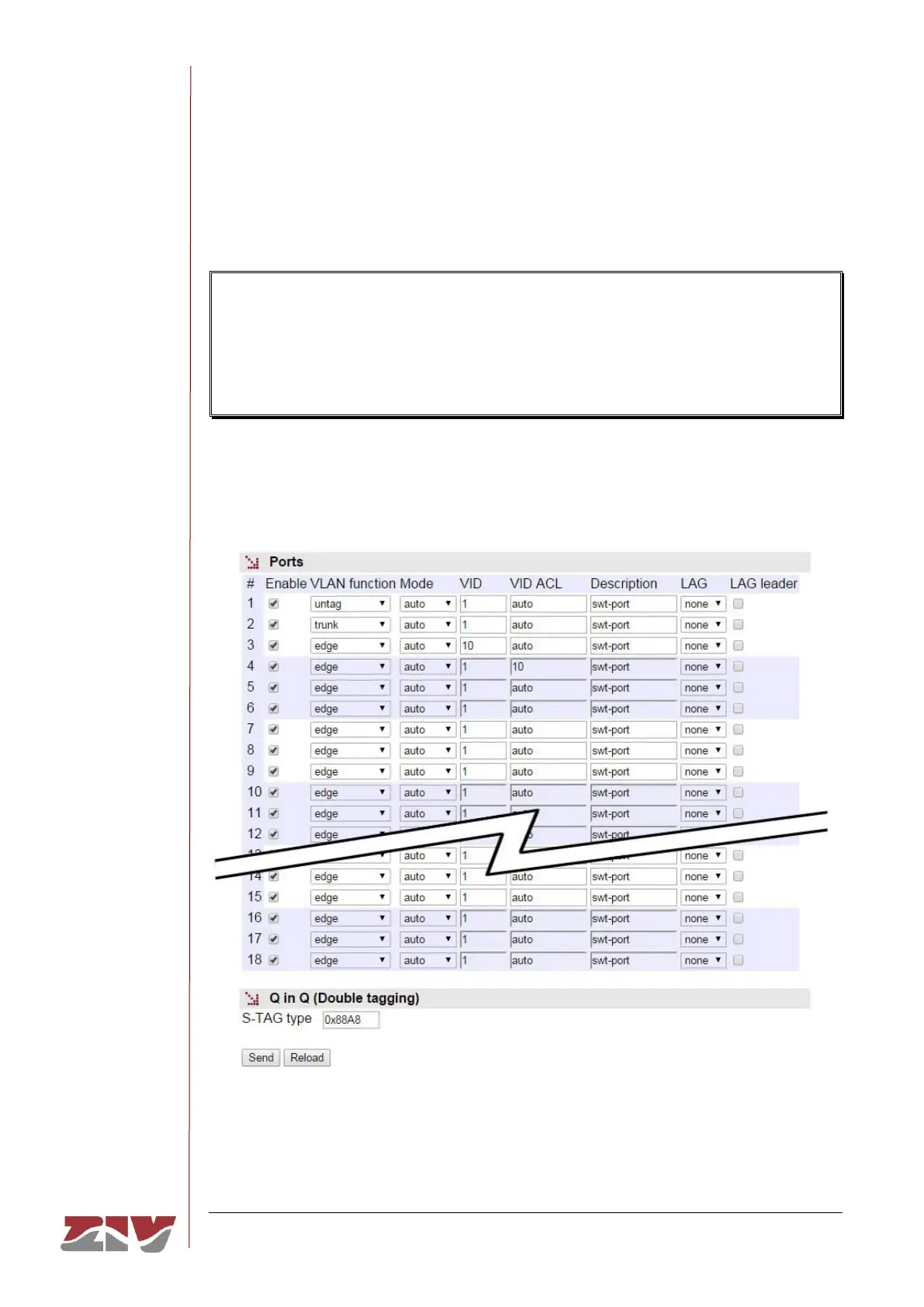 Ethernet ports in the equipment, and the assigning of each port to one of the VLANs