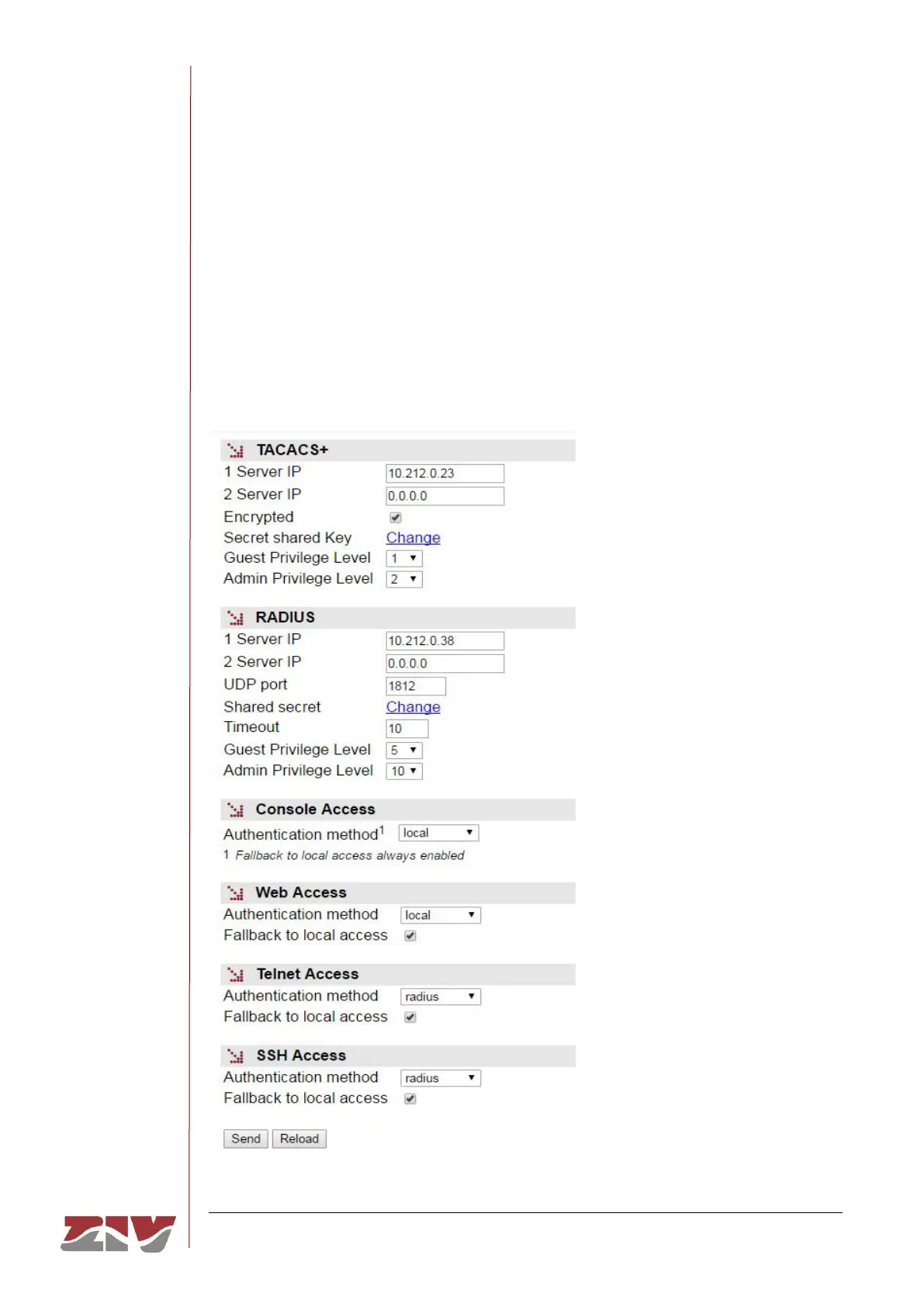 purpose, the equipment has a TACACS+ client and a RADIUS client.