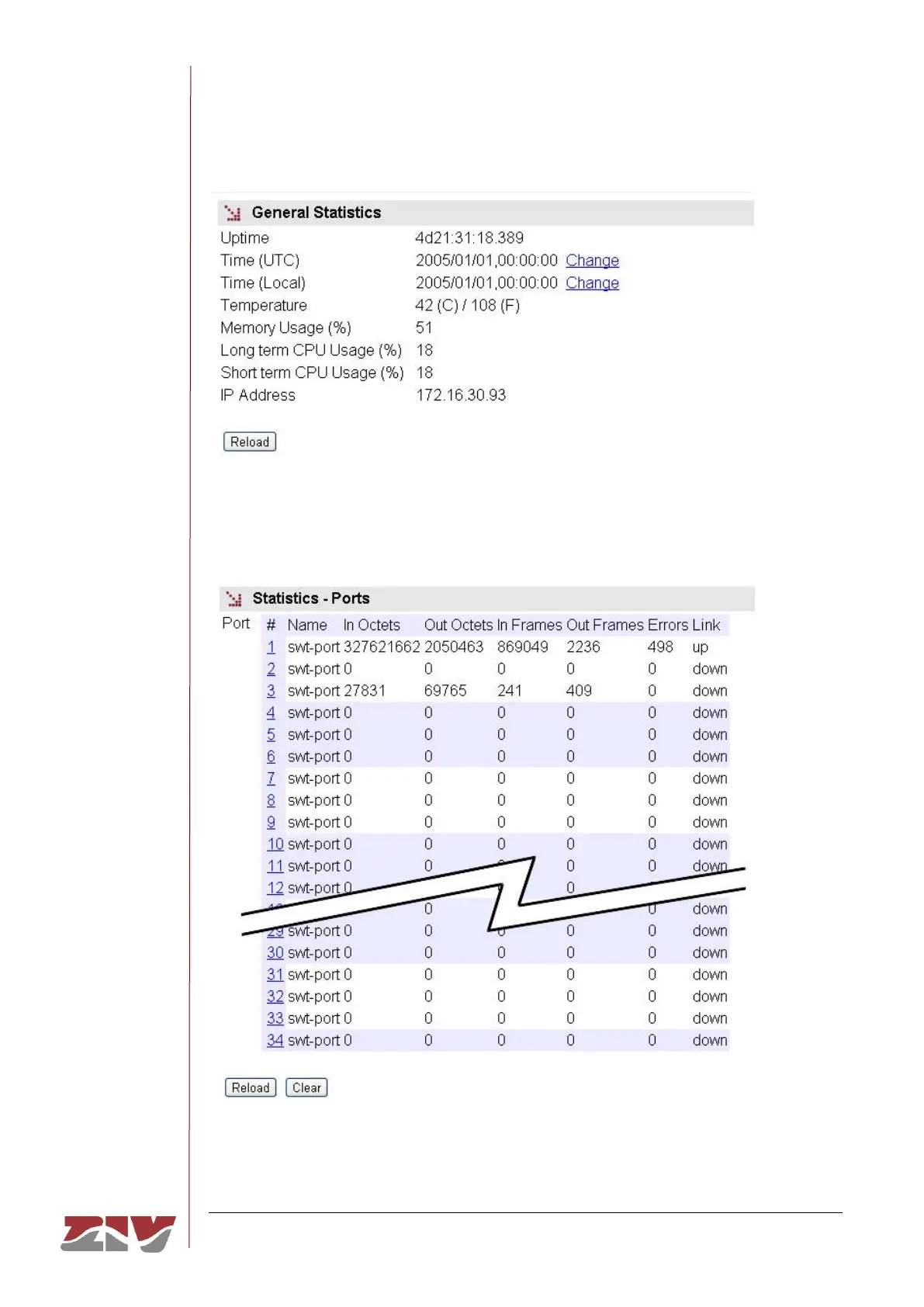 FIGURE 53 Example of statistics related to the Ethernet ports status