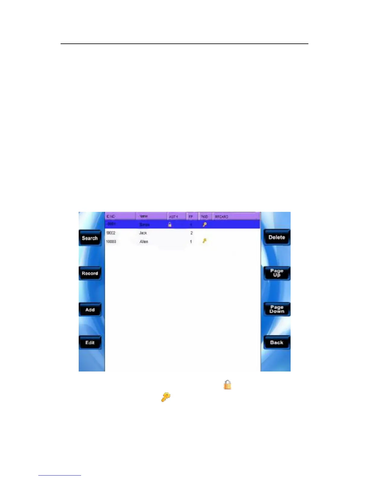 Note: 1) Shown as above figure, the icon express that this staff