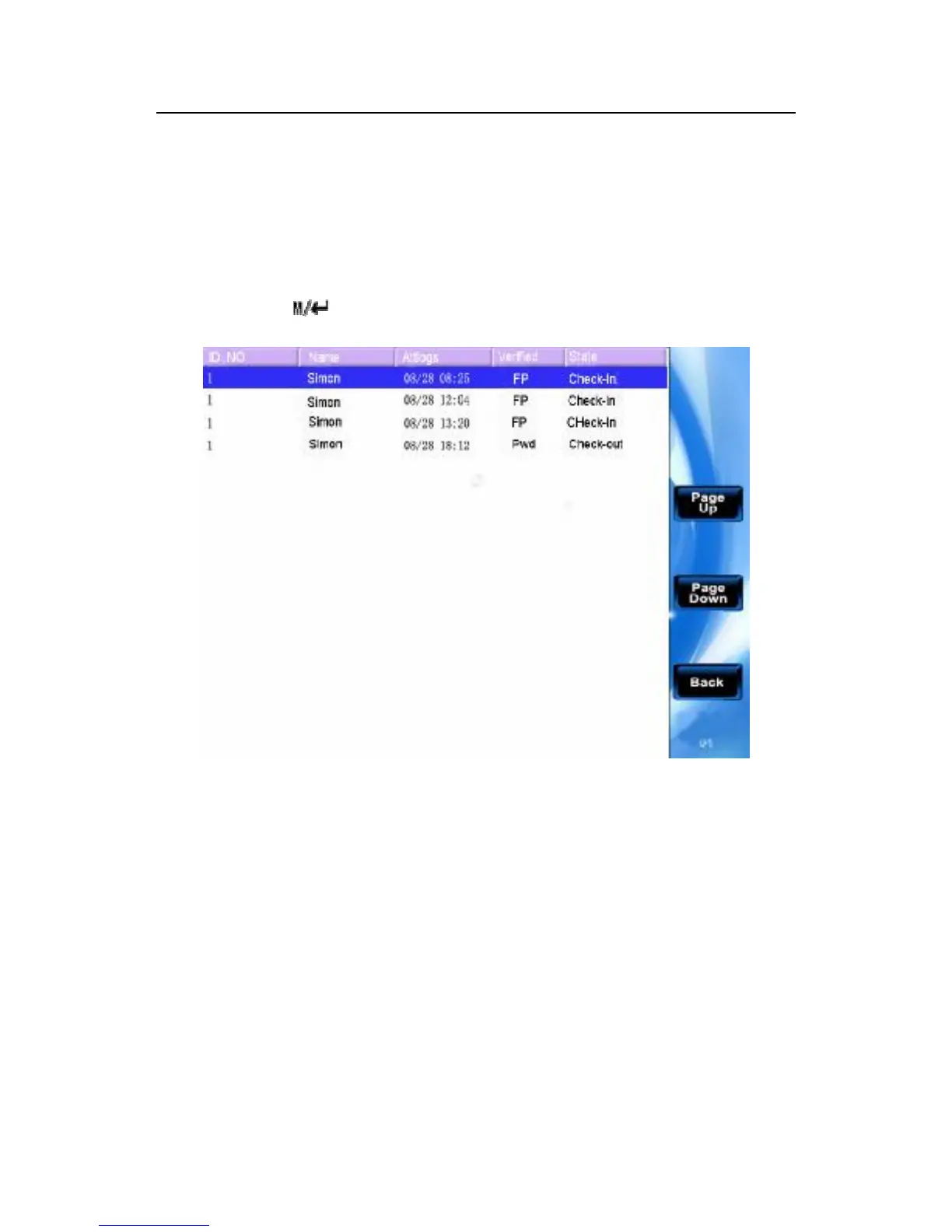 Scroll ▲/▼ key to browse the attendance log line by line.
