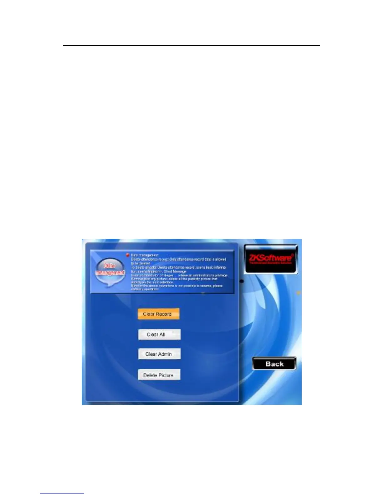 Delete attendance record (Clear Attlog): Deletes all attendance