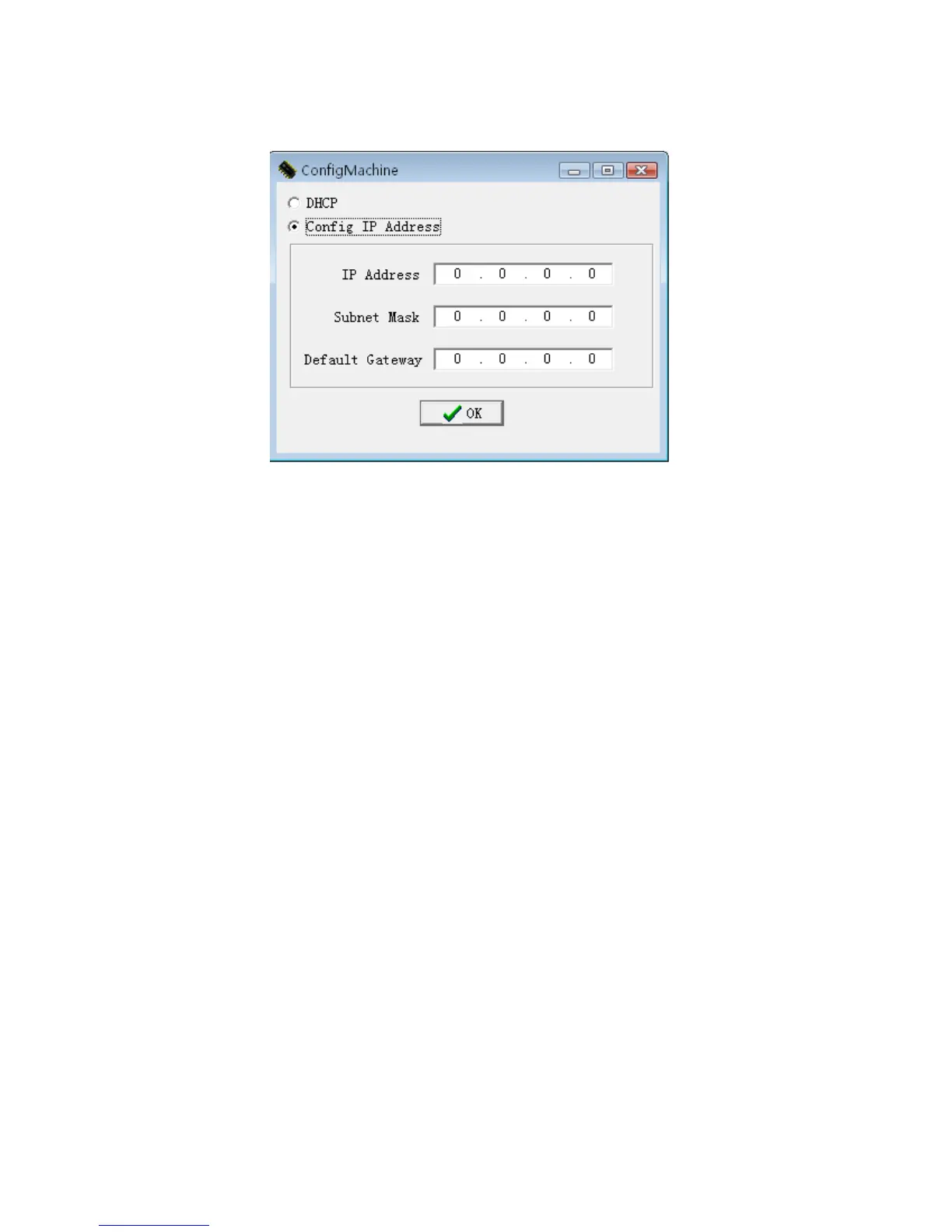 Click configMchine this button, the following menu will pop-up