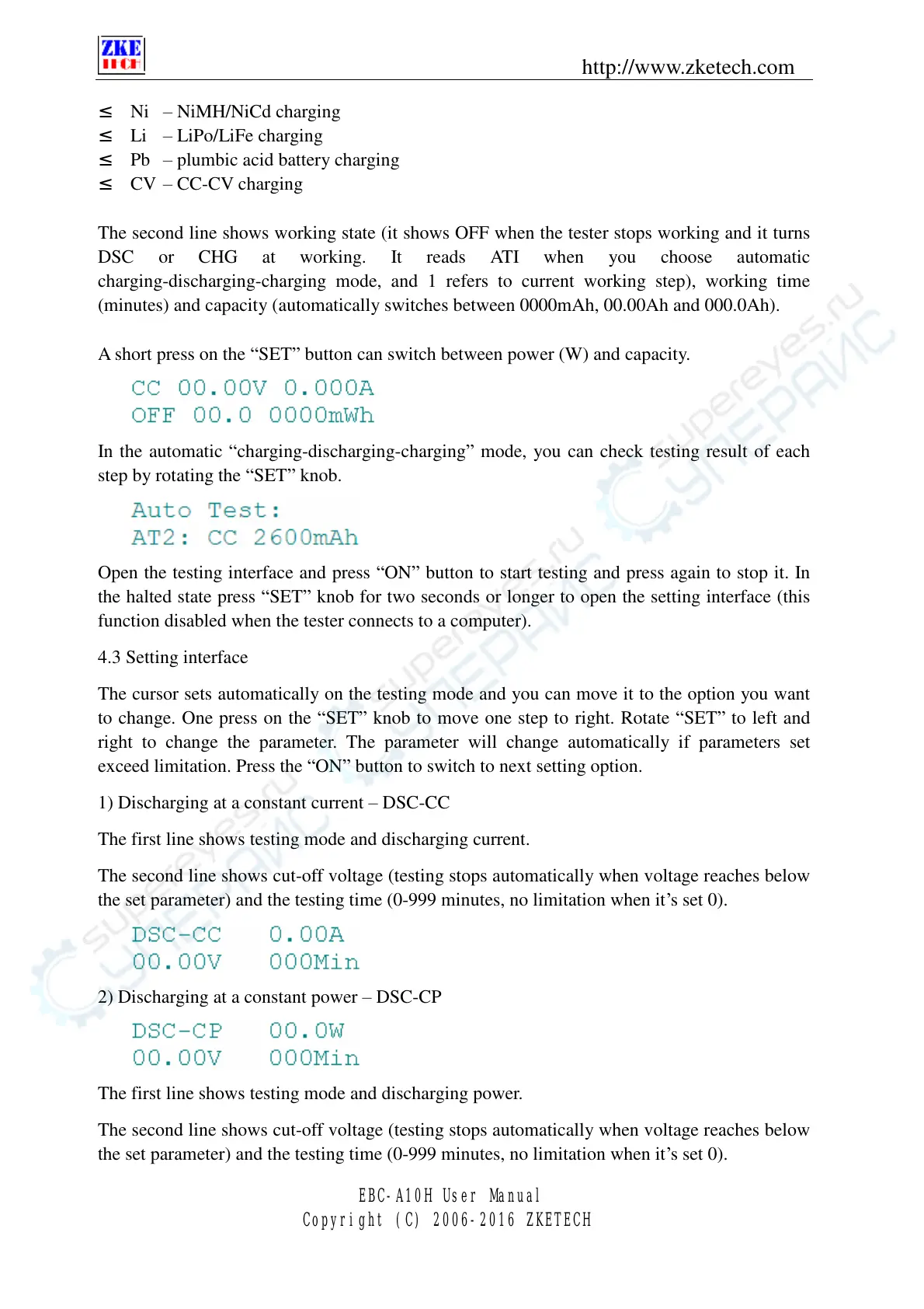 (minutes) and capacity (automatically switches between 0000mAh, 00.00Ah and 000.0Ah).