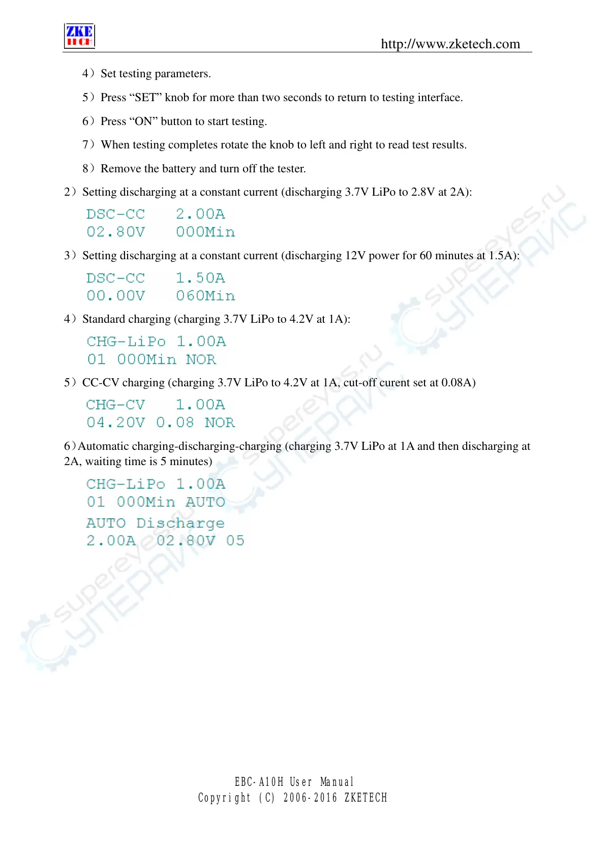 6)Automatic charging-discharging-charging (charging 3.7V LiPo at 1A and then discharging at