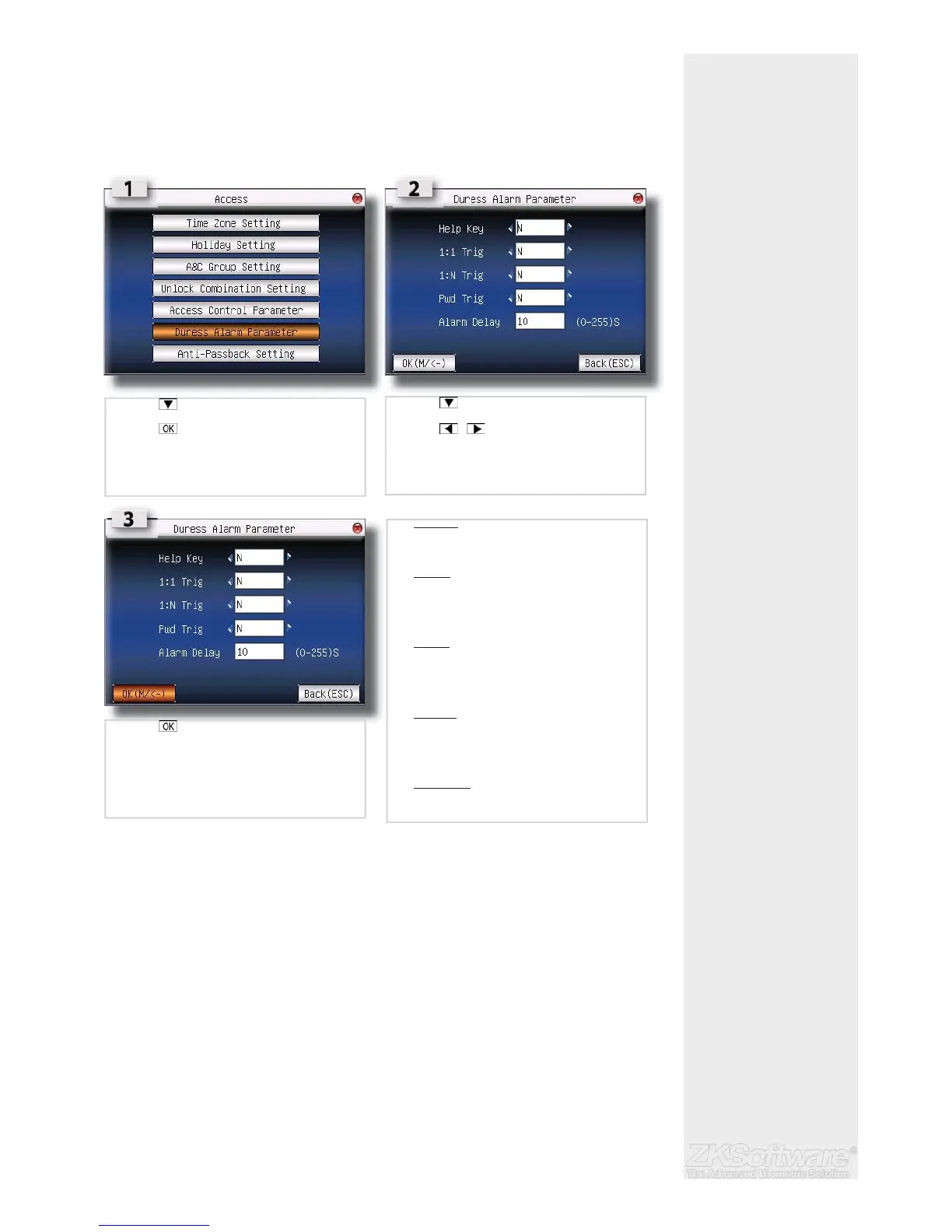 tor does not need to enable any of the verifi cation methods in Duress Alarm Param-