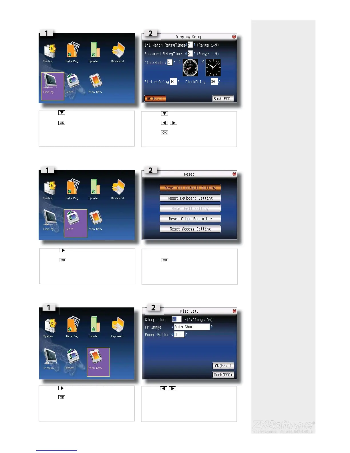 • Press 3x times to select MISC SET