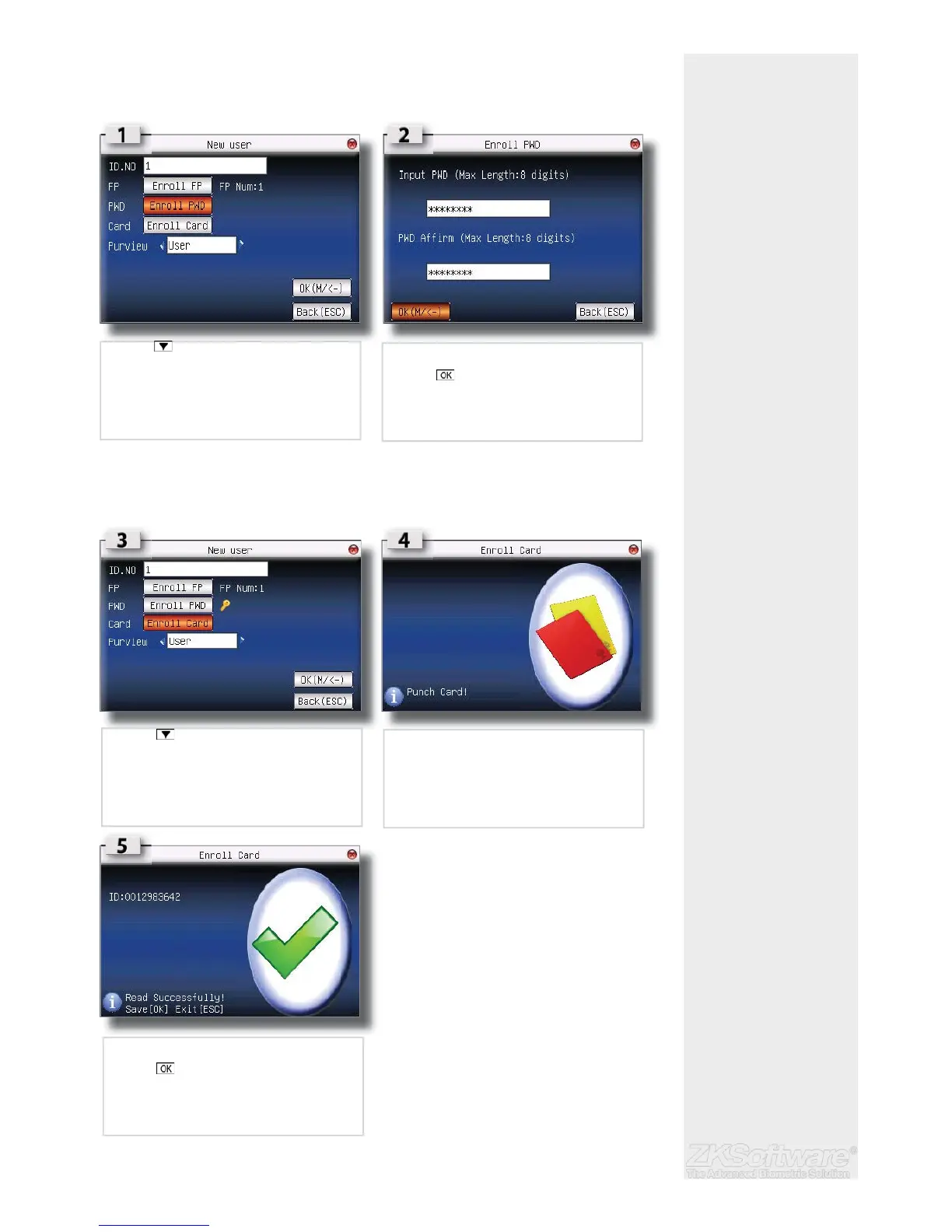 If a user cannot enrol his fi ngerprint, he can choose to use a RFID Card. Follow the steps
