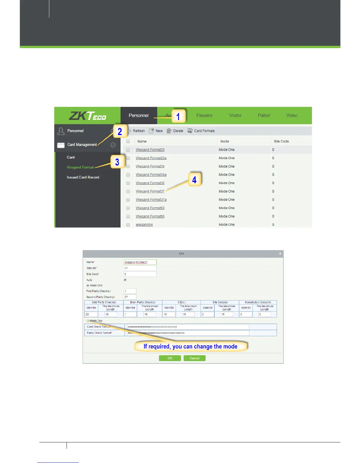 This software supports two modes for adding Wiegand Format, if mode 1 does