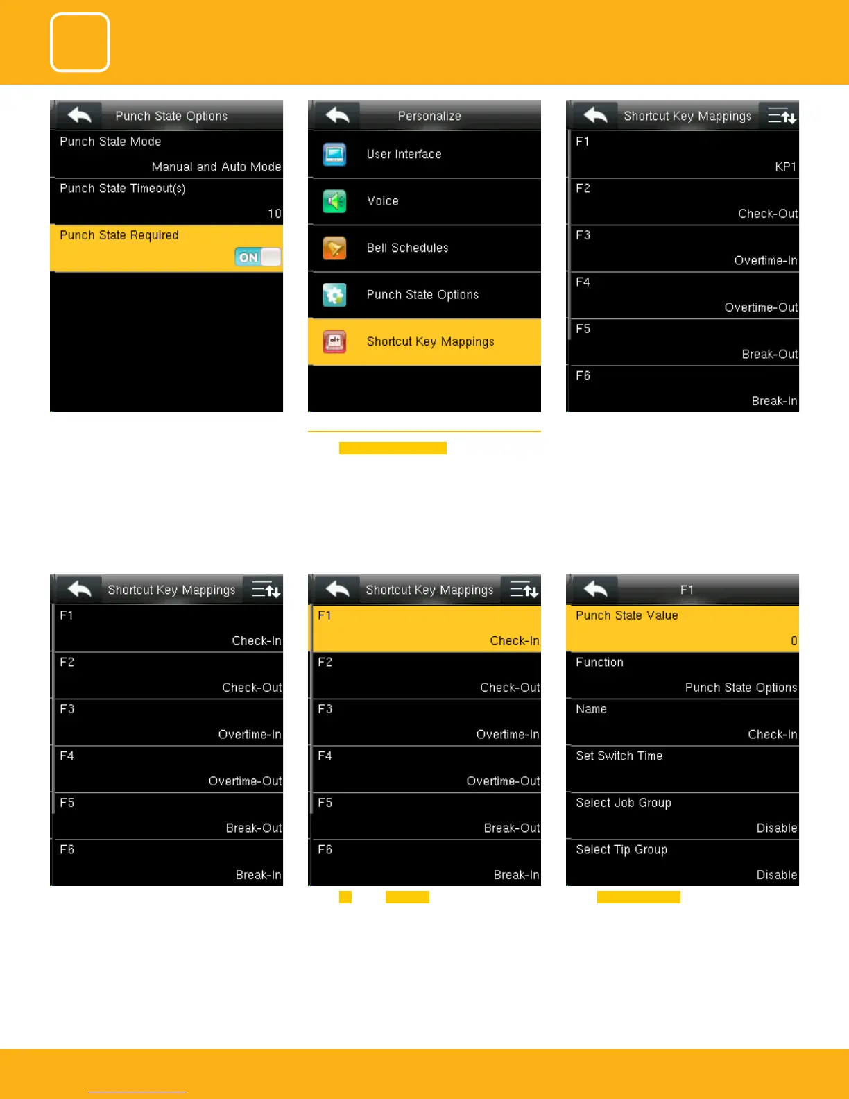 ZKTeco F305 - Shortcut Key Mapping