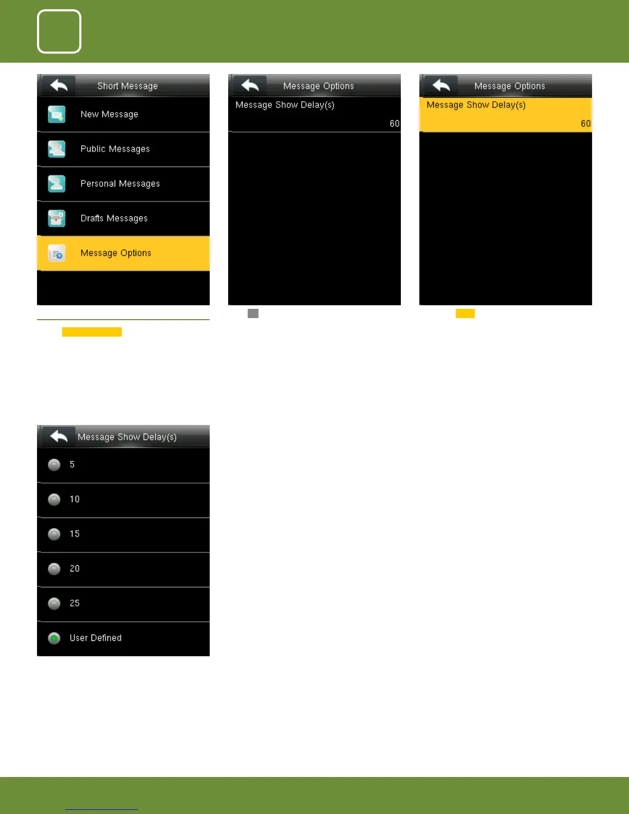 ZKTeco F305 - Message Options