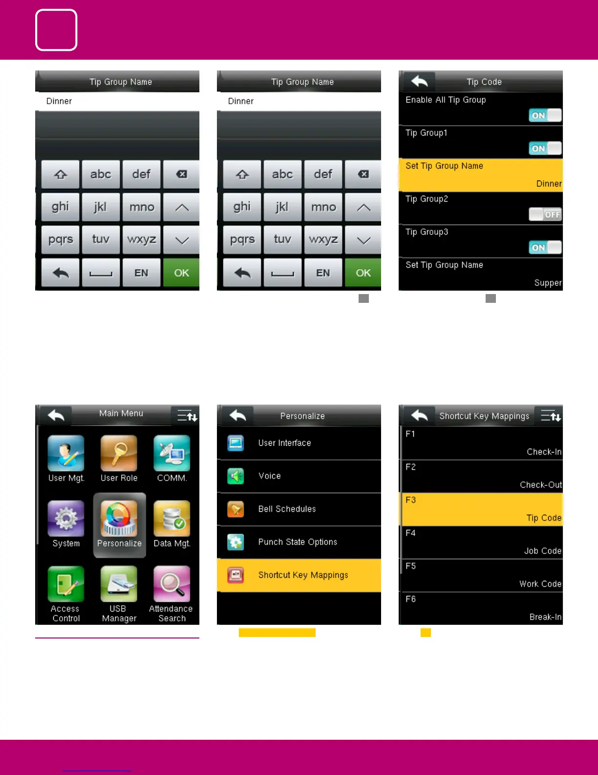 breakfast to Dinner with the keypad on the clock.
