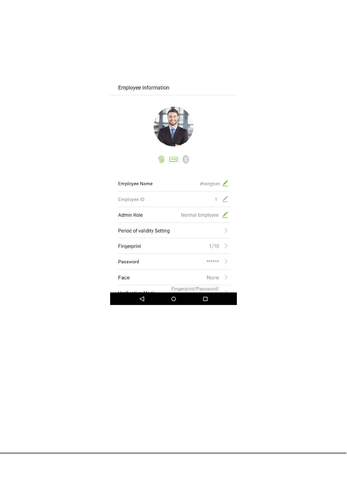 On the employee management interface, tap an employee in the employee list to enter the employee information