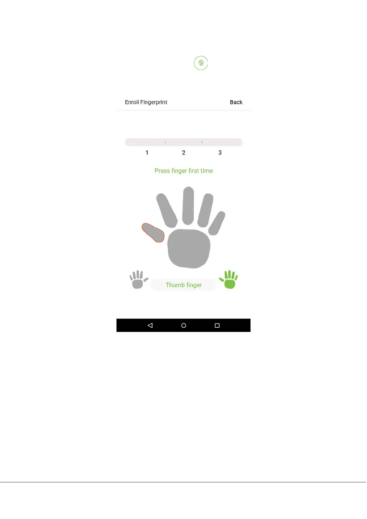 Select the icon on the left or right side of the screen and then tap on the finger you would like to register a