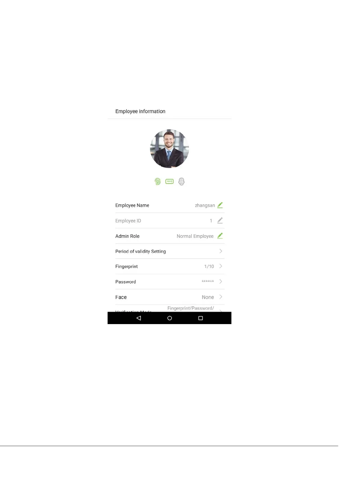 1. Tap on the [Verification Method] field on the Employee informationinterface.