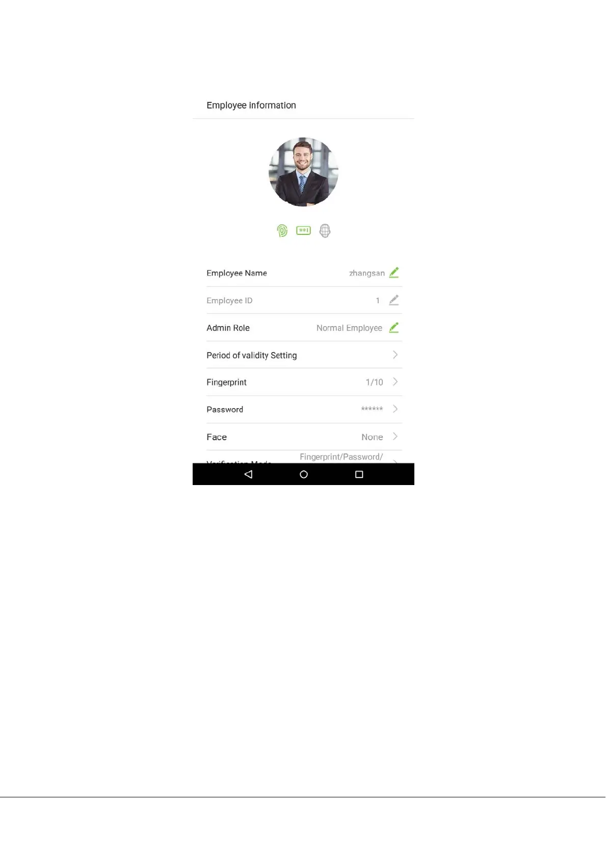3. Return to the “Employee information” interface and it will display the verification method you have chosen.