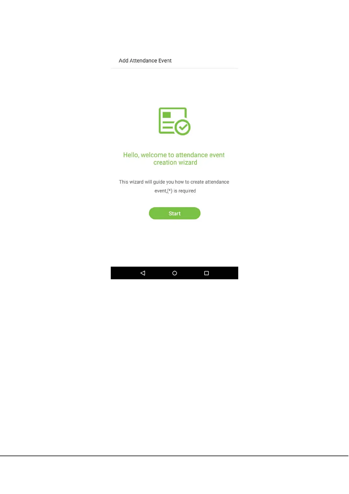 2. In the attendance event creation wizard, tap on [Start].