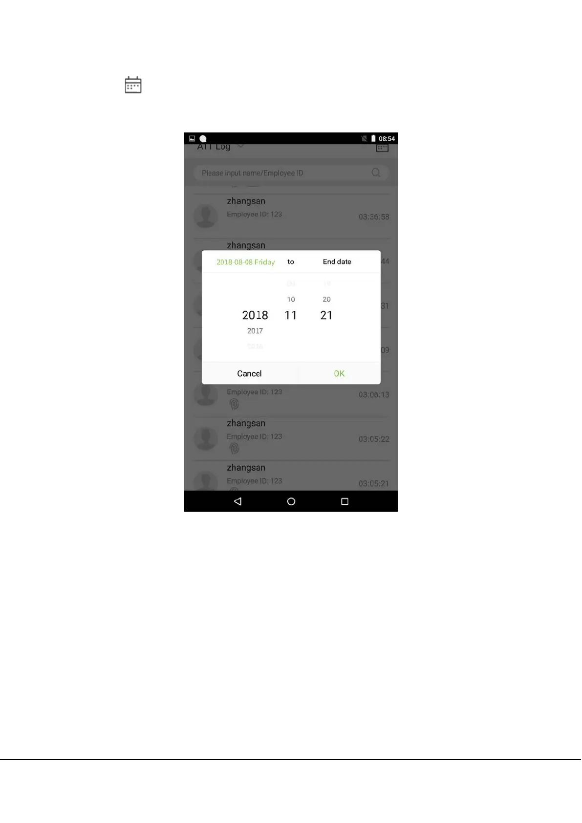 4. Tap on the button to access the following window where you can select the [Starting Date] and [Ending