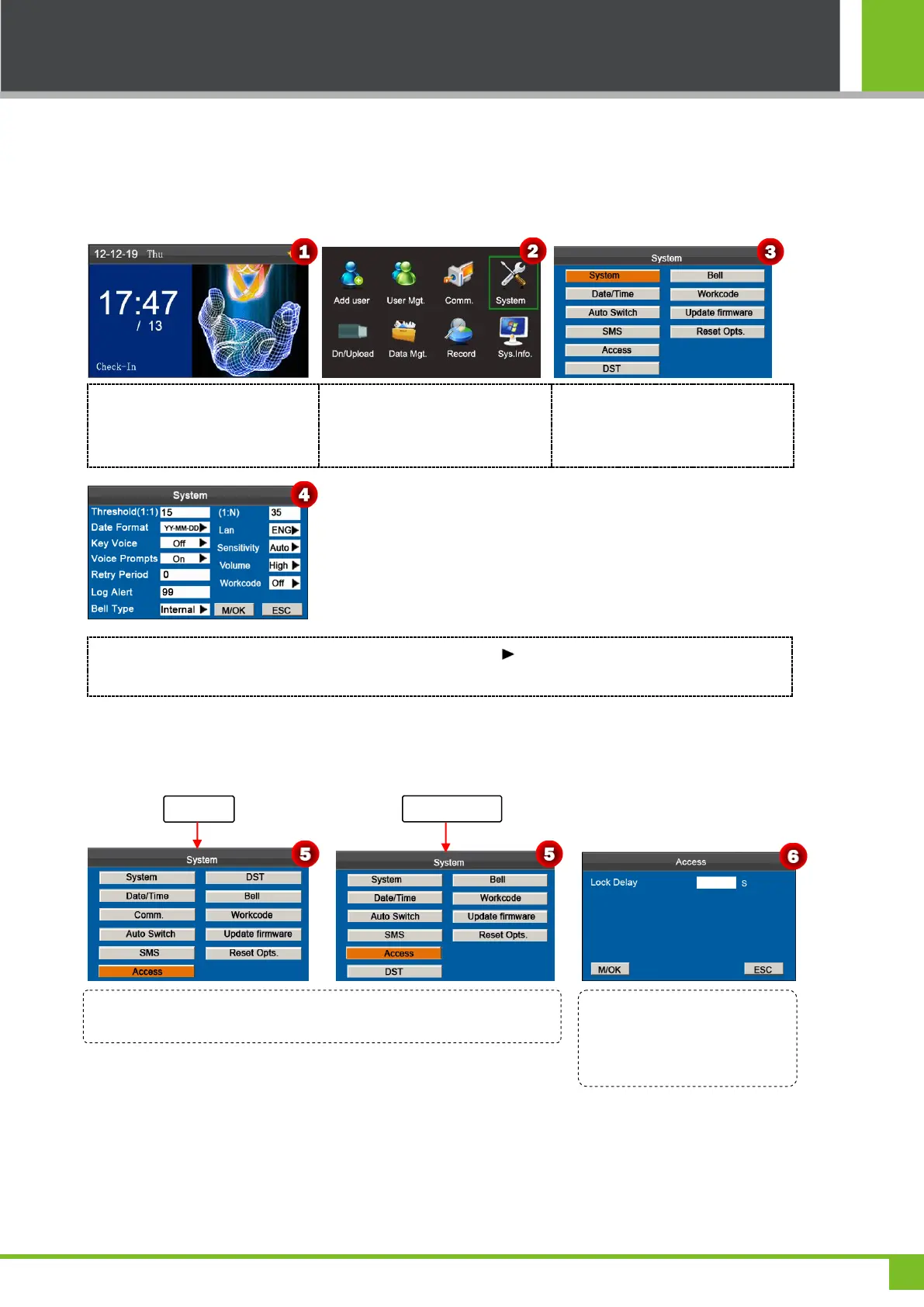 On the System interface, press ▼ key to select Access and press [M/OK]