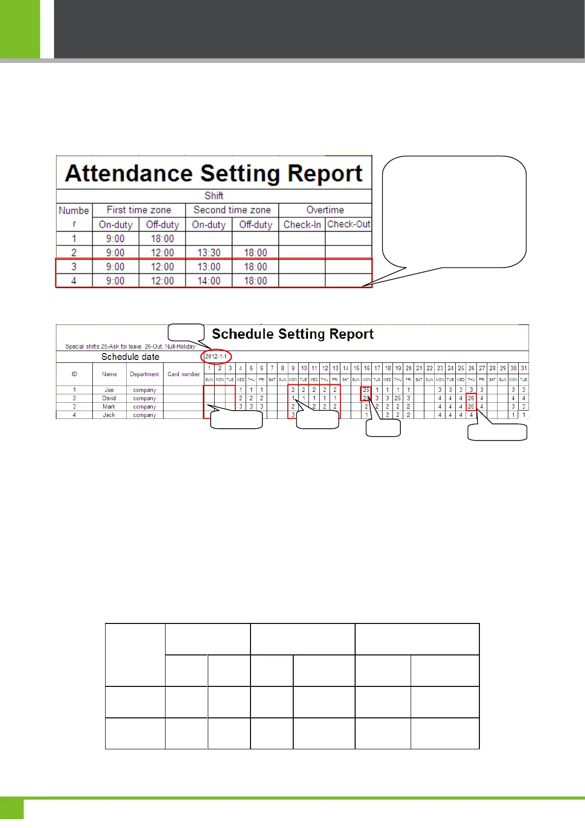device. Then, schedules in the Attendance Setting Report can be used.