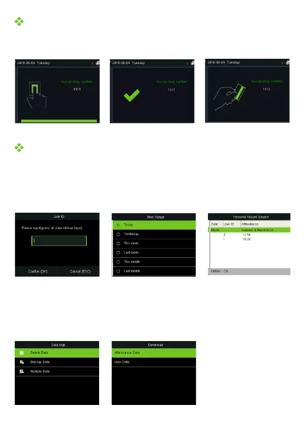 Press M/OK to enter the main menu and select [Attendance Search] to enter the