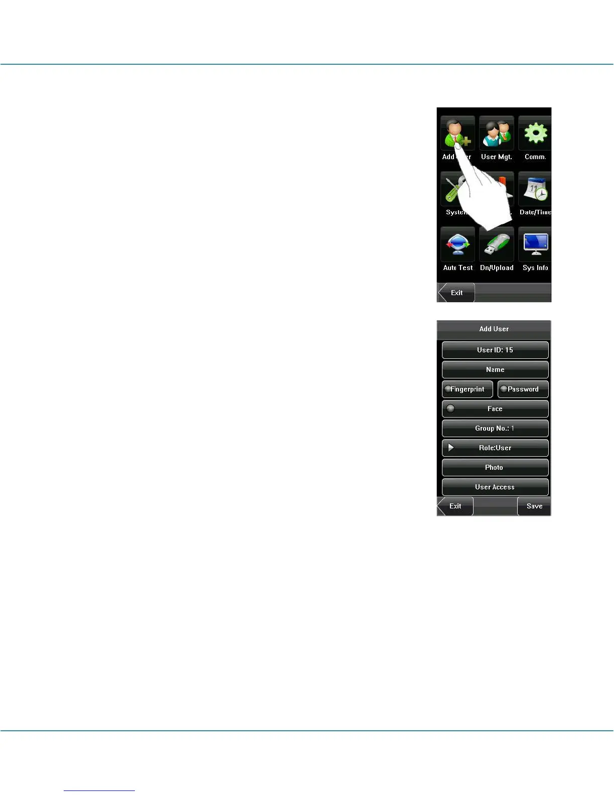 Press [Add] on the [User Mgt.] interface to display the [Add User]