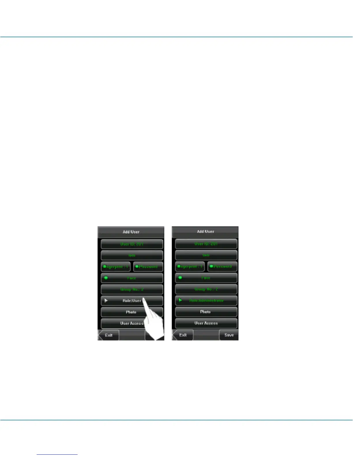 1. On the [Add User] interface, press [Role: User] to change the user to an