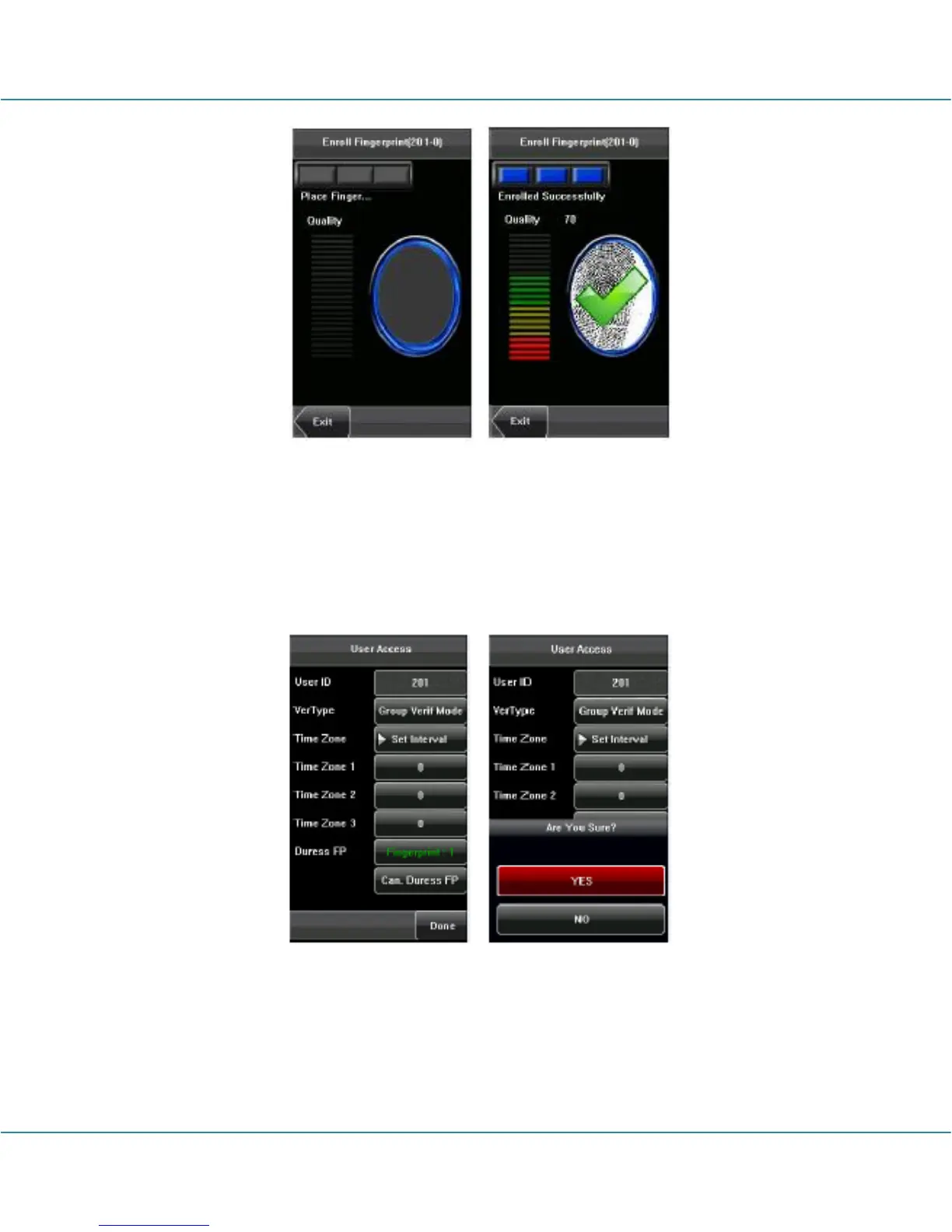 Select [YES] to delete the enrolled duress FP, otherwise select [NO] to cancel the