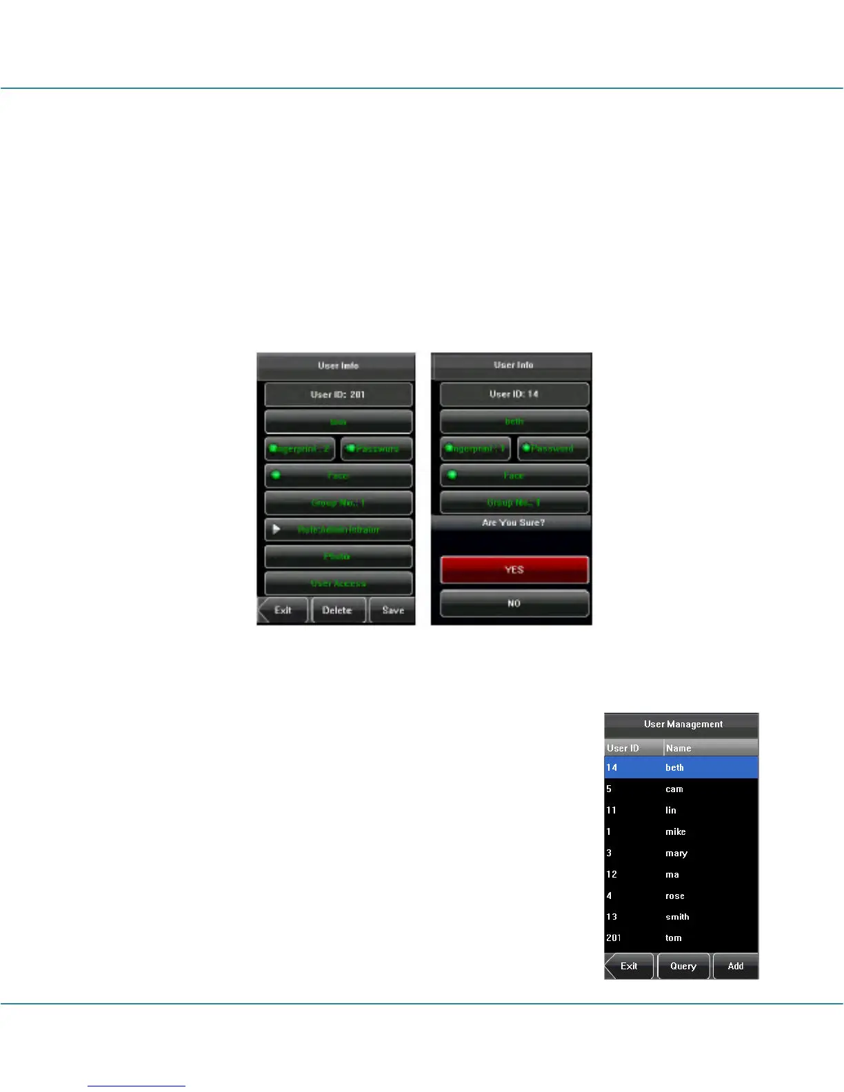 2. On the displayed interface, click [YES] to delete the current user or [NO] to return to