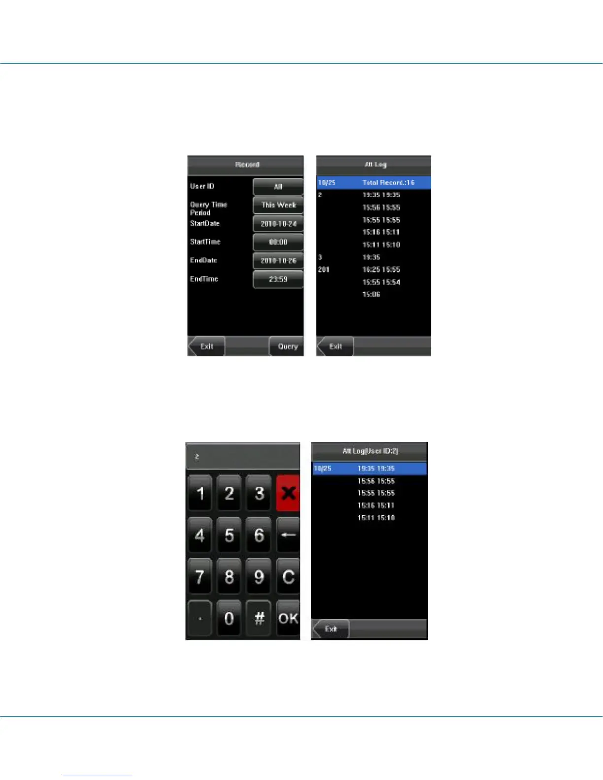 After setting the query conditions, press [Query] and the records that meet the specified