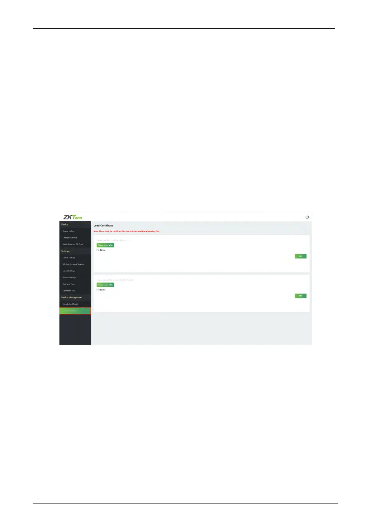 Click [Load Certificate] to upload the device certificate file and private key file.
