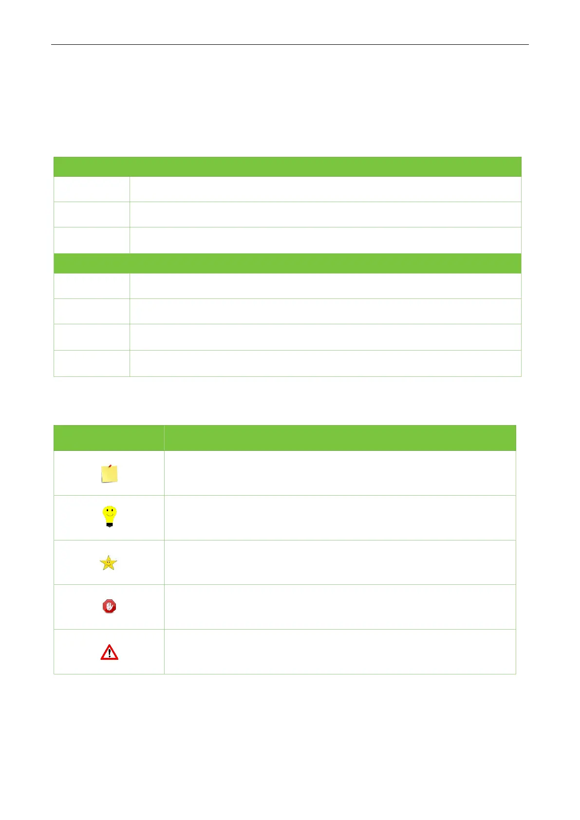 Conventions used in this manual are listed below:
