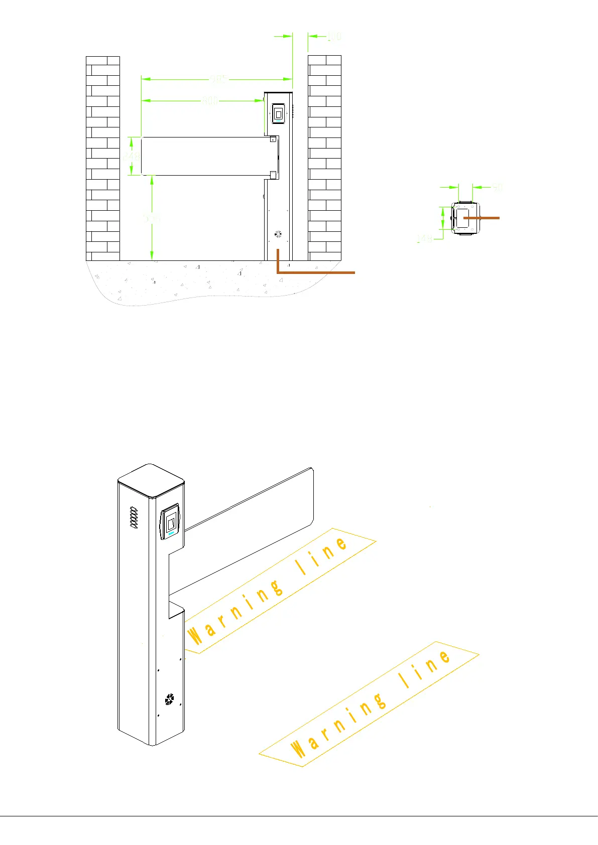 and then install the screws. Place the swing barrier turnstile according to the sizes and positions as