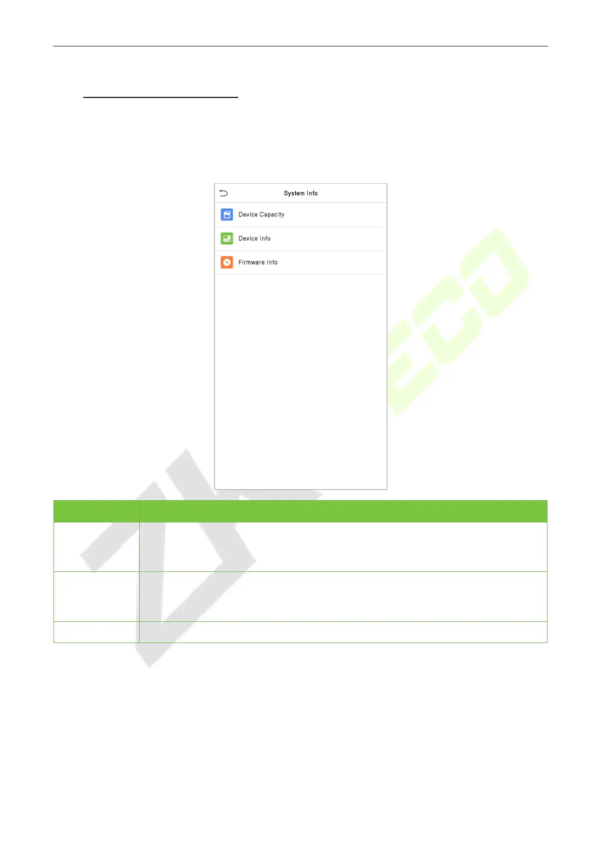 With the system information option, you can view the storage status, the version information of the device,