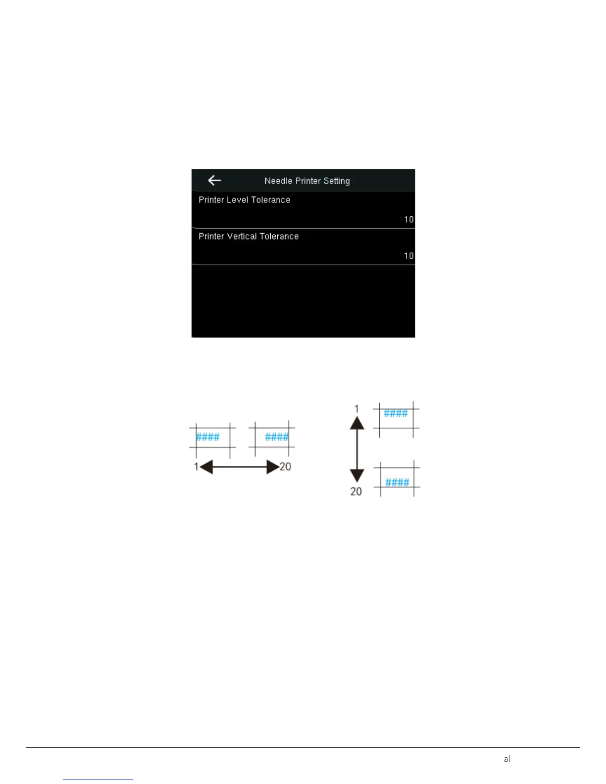 Clock Core Setting>Needle Printer Setting. Adjust the print position of the words in table cell. The adjustment range is