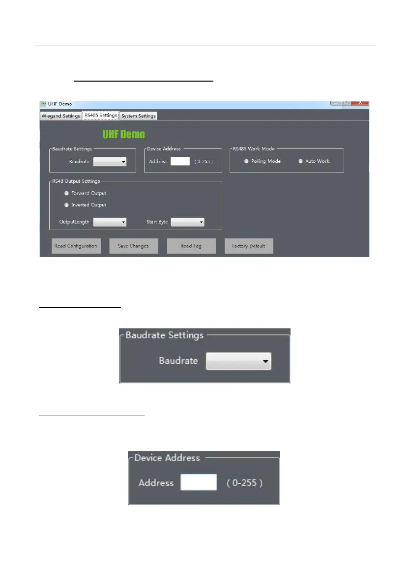 ZKTeco UHF10F Pro Reader - RS485 Communication Interface; RS485 Baud Rate Settings; RS485 Device Address Setup