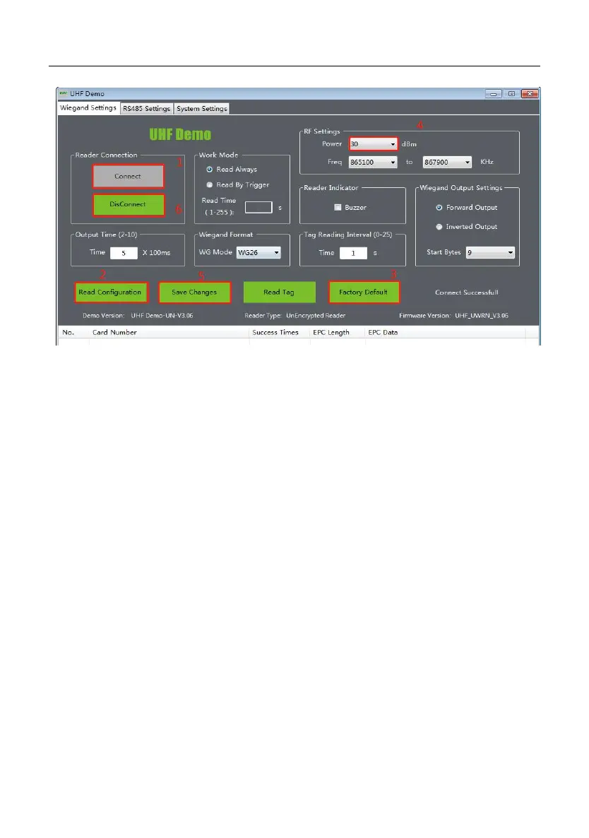 When the reader is connected to DEMO, you need to click