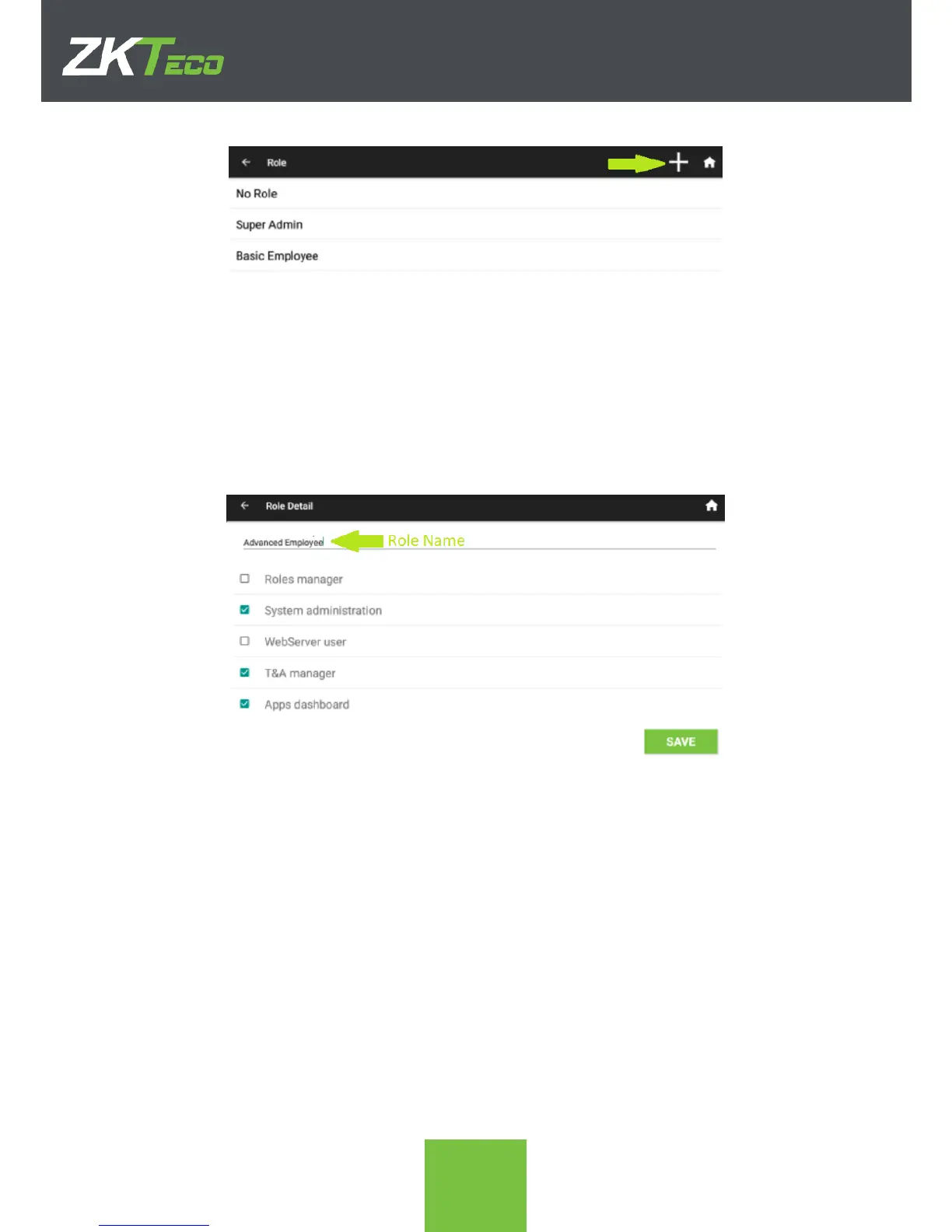 2. Input the name of the Role, and the permissions that will include. Click SAVE to